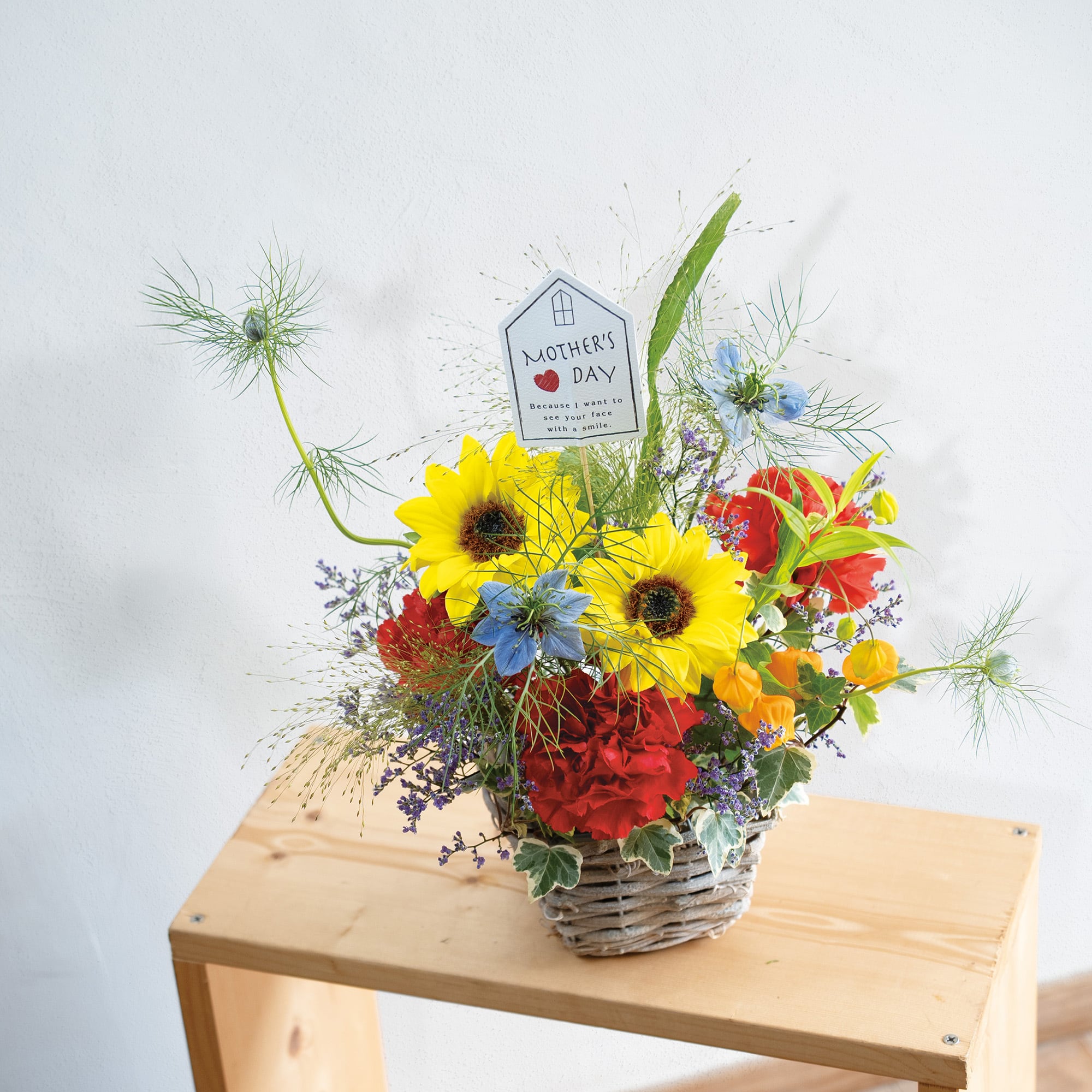 パッと咲くひまわりは、いつも家族を照らしてくれる元気なお母さんにぴったり。